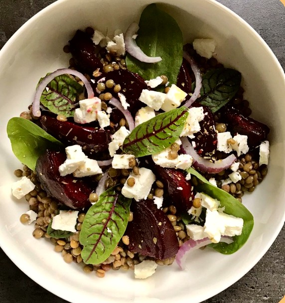 - Lentilles vertes, betteraves rôties & feta : une assiette colorée et pleine de caractère.