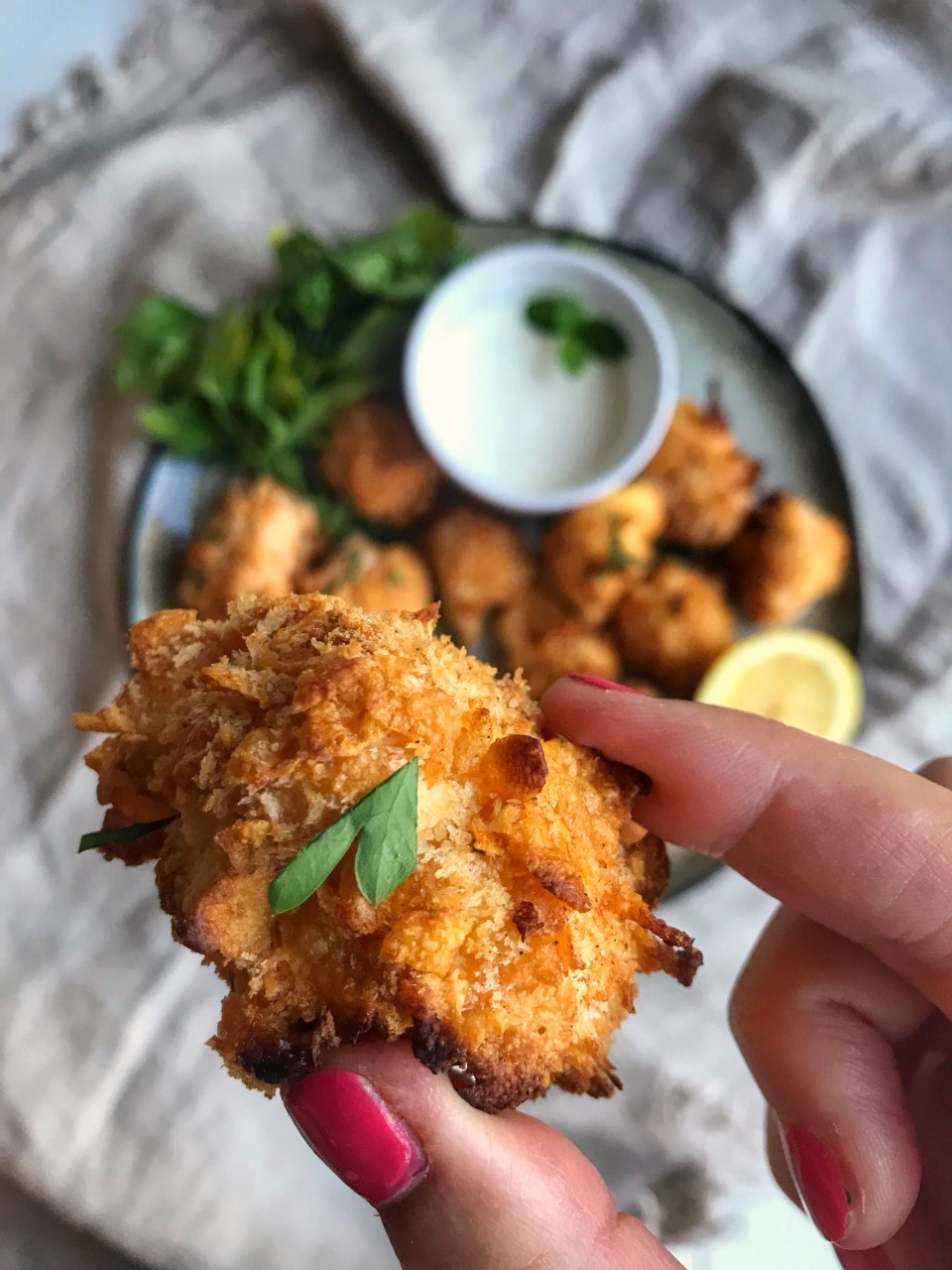 - Nuggets de chou-fleur & sauce à l’ail : gourmands et ultra croustillants.